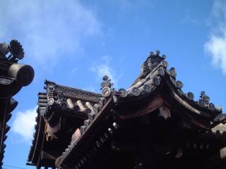 | →瓦の先端にひまわりのようなお花の瓦がありました。 かわいいので撮ってみたのですが、わかりにくいな〜。 |