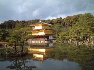 | 金閣寺といえば、これ→ 本当にメインはここだけで、あとはのんびり散策するのみ(笑)。 途中「夕佳亭」という茶室があったり、小さな滝があったり、最後にお土産やさんで金閣寺のミニチュアがあって、思わず買ってしまうそうでした(笑)。 |