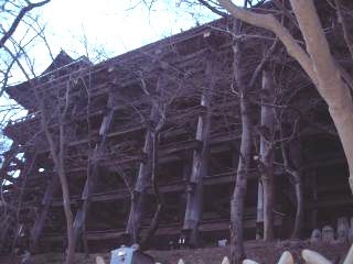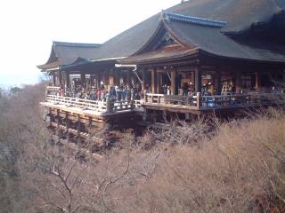 | 拝観料を払って、中へ入ると、そこにはかの有名な「清水の舞台」 高所恐怖症の私には、ちと怖いですな。。。 |