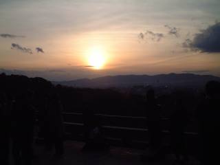 | 舞台から見た夕陽。 綺麗だね〜。 この夕陽を撮るために、父カメラマン粘りました。 |