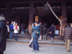 | ↑の建物の長い外廊下で成人の日に「通し矢」が行なわれます。 そして、お堂の中にはをびっしりと埋め尽くすようにして立つ千手観音像があります。撮影禁止なので、写真は無いのですが、本当に圧巻です。 はじめて行ったとき、鳥肌が立ちました。 この千手観音の中には、会いたいと願う人の顔が必ずあると伝えられています。 私には会いたい人のお顔がわかりませんでした。。。 |