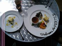 おいしかったよー。 この後のデザートもとてもgoodなのでした。 右がレディースセットのデザート。 左は男性が頼んだランチのデザート。 ちと、かわいそうだったので、とんさん☆旦那にひとつケーキをあげました(私、やさしー)。 |