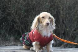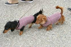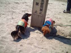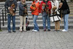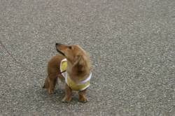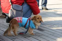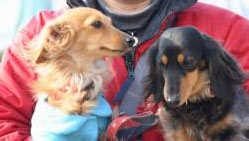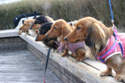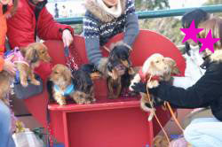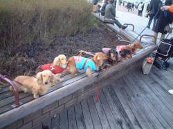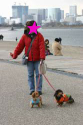 | ベンチで記念写真を撮っていると、たくさんのダックスが珍しいのか、写真を撮って行く人たちもいました。 目立つのかな〜。 路上パフォーマンスのお兄さん達より人気者!? |