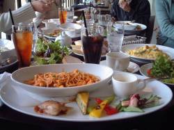 | お台場のwanちゃんもOKというレストランでお食事をしました。 レディースセットがお得ということで、女性はみんなオーダーしました。 男性は残念ながら、注文できません(当たり前か)。 レディースセットは先着10食なんだって。 もう5食、売れちゃったね〜。 |