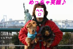 | sachiさん、自由の女神をバックに記念写真。 何回もお台場来ているのに、これだもんねぇ〜。 ・・・田舎者。てへっ。 |