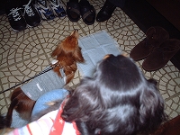 匂い嗅いでいる のがばれた。 逃げよう! あ、 かあちゃん みっけ。 |