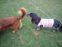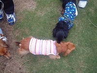 | 初めてお会いした人もいましたが、ダックス好きはすぐに仲良くなれました。 しかもビビリっ子ばかりだから、なんか共通点があって「うちもなんですよ!」と話が弾みました。 素敵な出会いに感謝です。ゆかぴーさん、ありがとぉぉぉぉ。 とても楽しい1日でした!! またみんなと会いたいね☆ |