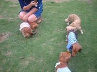 くるみはだっこが大好き。 ドッグランでも誰かを捕まえては「だっこ〜」とせがむ。 くるみのだっこ攻撃には、結構みんな弱いらしい。 小顔は得だな・・・。 ←はtaroママにだっこ攻撃中。 |
