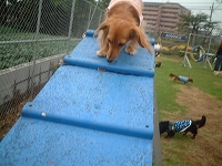 朝は小雨だったので、ドッグランには行けないかなと思っていたんだけど、おしゃべりをしているうちに上がったようなので、アジリティのあるドッグランへGo!! |