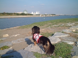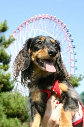 | 2004年10月18日(月) 場所:葛西海浜公園(東京都江戸川区) 本日は晴天なり♪ 朝起きたら、抜けるような青空。 週一日しかお休みのないかあちゃんは、実は寝ていたい・・・。 が!こんないい天気の日に出掛けられずにいられようか!! ラッキーなことに、今日はとおちゃんもお休みだ。 「どこ行く〜?」「海に行きたいね」となれば・・・お台場だ! そそくさと出発!! ・・・でもね、首都高速に乗って、大きい観覧車が見えてきたら 「葛西に行こうか」と行き先変更に。 だって、WAN連れで葛西に行った事なかったからね。 ランチにハンバーガー買って、大きい観覧車に向かってGo!! |