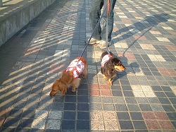 | 「ぜいぜい・・・んじゃ、そろそろ海のほうへ行ってみようか・・・」 橋を渡って海へ。 くるみちゃん、海デビューです! |