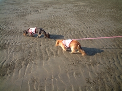 興味津々の2WAN。 砂の感触が気持ちいいのか、今日はたくさん 走りました。 |