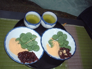 念願の草団子。 川沿いの縁台に腰掛けて、食す。 ほぉぉぉぉ、おいしい♪ しかしこの縁台、崖のすぐ側にある 。 落ちないのかとちょっとドキドキでした。 |