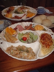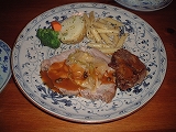 | どーん、どーん、どーん!! メインディシュ3レンチャン!!と、思えるほどの量。 2枚目のお皿が来た後に「この後がメインデッィシュですから」とスタッフの人に言われて、 とおちゃん&かあちゃん、目がテンになった。 だって、この時点で結構お腹一杯だったからね・・・。 しかし、すご〜くおいしくて、大満足でした! |