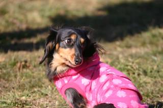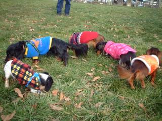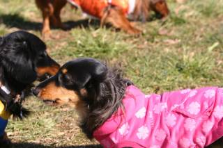 | 今日はお友達のケンシローくん、ユリアちゃん、 雫ちゃん、クラウドくんも一緒。 まずはブラック&タン同士のご挨拶。 |